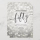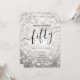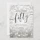 Elégant Glam Silver Parties scintillant Lights 50e anniversaire Script modèle avec programme de fête et texte de menu, lumières de parties scintillant et script de typographie moderne.