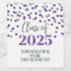 Graduation Party individuelle Weinflaschen Etiketten Klasse von 2025 mit Silber und lila Glitzer Muster confetti.