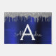 Silver Navy Blue Glitzer Brushed Metal Monogram Fußmatte