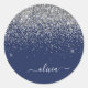 Silver Navy Blue Glitzer Giron Monogram Name Runder Aufkleber