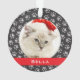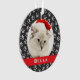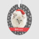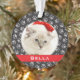 This elegant custom holiday ornament can be personalized with a cute photo of your pet cat (or dog) and their first name. Includes a soft background color with a red monogram stripe and silver paw print pattern. Makes a unique Christmas vend pour les lovers ou pour les celebrate kitty's first Christmas !