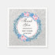 Mädchen und Frauen "danke" Serviette für eine Babydusche. Diese hübsche Serviette hat einen silbernen Glitzer Glitzern-Hintergrund, eleganten dunkelgrauen Text, und einen rot-blau-rosa und wasserfarbenen Rose Kranz. Persönlich gestalten, indem Sie Ihren eigenen Text, Namen und Babydusche hinzufügen.