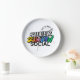 this is a clock with the silver rainbow social group logo on it