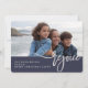 Diese stilvollen Weihnachtskarten sind mit einem dunkelblauen Hintergrund versehen und sagen "erfreut" in einem modernen silbernen Schriftart. Ihr Foto geht vorn, und es gibt Raum, um mit Ihren Namen und jede Nachricht zu personalisieren. Die Rückseite ist die gleiche Mitternachtsblau mit Imitaten silberne Polka Punkte.