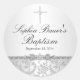 Taufsticker. Elegantes silbernes Rose- & Diamantenkreuz. Exklusiv Zazzle. Passen Sie Ihre persönlichen Daten an. Bitte beachten Sie alle flachen Bilder! Sie haben KEINE echte Spitze, Diamanten oder Juwelen!!