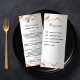 Programm- und Menükarte. Personalisieren und fügen Sie Ihre Namen, Datum und Menü und Programm. Imitate mit silberfarbenem Hintergrund, mit rosgen goldenen Wirbel verziert. Schwarzer Text.