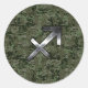 Silver Sagittarius Zodiac Woodland Digital Camo Runder Aufkleber