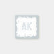 Kleine mit Monogramm Klebrigtöne in silberfarbenem Sand, mit hasigen weißen Pinselstrichen und einem coolen Schablonenstift-Schriftart in hellgrau, wo man Notizen, Botschaften, Dinge, die man sich merken kann, Dinge zu tun, Gedanken und tägliche Ziele oder was auch immer man braucht.