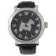 Uhr, Vintage Männeruhr mit schwarzem Lederarmband