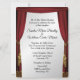 Dunkelrotes Kino oder Vorhänge aus der Bühne für Ihre Hochzeitsfeier. Der Name der Braut und Bräutigam vorne ist wie die Namen der Hauptakteure der Veranstaltung bekannt gegeben. Fügen Sie auch das Datum der Hochzeit hinzu. Wenn Sie Ihre Einladungen machen, verdreifachen Sie bitte alle Ihre Rechtschreibung und Daten mit einem Karo.