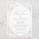 Diese elegante Vintag-inspirierte formelle Hochzeitseinladung enthält den Text in silberfarbenem Drehbuch und Serif-Schriftart, gerahmt von einem zarten Vintagen Silberrebe-Motiv. Die Rückseite bietet Platz für Hochzeitsdetails, zusammen mit einem QR-Code können Gäste scannen, um Ihre Website und UAWG zu besuchen, was die Kosten für den Druck und Versand separater RSVP-Karten rette.