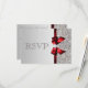Elegante formale Silber- und Rottöne UAWG Hochzeit, Babydusche, Geburtstagsparty oder Firmenveranstaltungen flache Karten Vorlage mit einem schönen bedruckten silberfarbenen Sequenzmuster, einem niedlich glänzend rot bedruckten Bilderbogen und Band und hübsch bedrucktem Diamantschmuck. Diese eleganten, raffinierten, zeitgenössischen, glamourösen, modernen Antwortkarten-Vorlagen sind beiderseits dekoriert. Schöne, schicke, feminine, trendige, einladende Atmosphäre. Bitte beachten Sie: Alle Einladungen auf Zazzle sind flach gedruckt. Text, Schriftart und Farbe des Schriftartes können alle angepasst werden. Wenn Sie Hilfe bei der Anpassung Ihres Produkts benötigen, kontaktieren Sie mich bitte über meinen Shop. Ich helfe Ihnen gerne. Ich habe passende Produkte in meinem Geschäft.