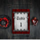Silver Skulls Blood Red Silk Gothic Wedding Tischnummer