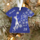 Dieses Holiday-Ornament besticht durch eine silberne Silhouette und einen Basketballspieler vor einem Spritzer verzierter Silberschneeflocken. Das Bild wird auf einem Gradienten tiefblauen Hintergrund platziert. Ihr eigener Text ist in Silber auf der verlassen Hülle, und ein zweites Feld rechts unten. Die Rückseite des Ornaments hat den gleichen blauen Hintergrund und Schneeflocken, und zusätzliche Textfelder, die Sie anpassen können. Ideal für den Basketballspieler oder -fan.
