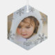 This personalized foto ornament with a scatter of elegant falsch silver glitter snowflakes and your optional custom text in dark gray is a cute way to display treasured memories. These custom glass Christmas ornaments in a hexagon shape allow light to shine through so the minimalist 7 silver snowflake design and your picture peek through on the back as they hang on your Christmas tree. Easy to personalize, just add your foto via the provided template and then add your text in dark gray or delete and clear to remove the placeholder text if you prefer your ornaments without wording. So add your foto von hinter dem Rad vom Elegant falsch silver glitter snowflake design and create your own customized Christmas ornaments, maybe for everyone in the family for a matching set. Fun for kids, Ehebruch, family and friends, these personalized ornaments featuring your foto and silver snowflakes make keepsakes that you will treasure for years to come.