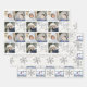 Personalisieren Sie diese koordinierenden silbernen Schneeflottblätter mit Ihren Fotos und Texten für eine freundliche Weihnachts- oder Winterurlaubsgeschenkverpackung. Jedes Blatt hat einen Hintergrund aus hellgrauem weiß gekalktem Holz mit Akzenten von Imitaten silberne Glitzer Schneeflocken zur Krawatte Ihrer individuellen Verpackungspapierdesigns zusammen. Blatt 1 zeigt eine Wiederholung von drei Ihrer Lieblings-Fotos und "Joy" in einem eleganten Skript, umgeben von drei kleinen Silberschneeflocken. Blatt 2 ist mit einem Muster größerer silberner Schneeflocken und dem eigenen Text in einem Kreis um ausgewählte Schneeflocken entworfen. Blatt 3 ist ein Schachbrettmuster im Wechsel zwischen Ihrem Foto in Imitaten silbernen Glitzer und passenden stilisierten Schneeflocken. Erstellen Sie Ihren eigenen Mix und passen Sie die personalisierten Weihnachts-Foto-Packpapier-Blätter mit diesen koordinierenden silbernen Schneeflottentechnik.