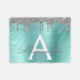 Silver Teal Glitter Brushed Metal Monogram Name Fleecedecke