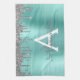 Argent et Turquoise Aqua Blue Faux Foil Parties scintillant étincelante métallique brossé Monogramme en métal Nom et serviette de cuisine initiale. Cela rend le cadeau parfait pour 16 ans, mariage, douche nuptiale, anniversaire, baby shower ou bachelorette pour quelqu'un qui aime le luxe glam et les styles chic.