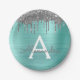 Silber und Aquamarine Aqua Blue Imitats Foil Metallic Sparkle Glitzer gebürstete Metal Monogram Name und Initial Party Teller. Das macht den perfekten 16 Geburtstag, Hochzeit, Brautparty, Jubiläum, Babydusche oder Junggeselinnen-Abschied Geschenk für jemanden, der Lieben glamourösen Luxus und schicke Stile.