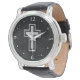 Silver Tone Christlich Cross auf Black Sparkle Armbanduhr