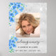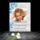 Personalisieren und fügen Sie ein Foto, einen Namen und Daten hinzu. Ein Imitat silber metallisch aussehender Hintergrund und Glitzer, dekoriert mit blauen vergisst-me-nicht-Blume.
