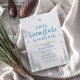 Feiern Sie mit dieser niedlichen Winterlandeinladung einen besonderen Tag für Ihren Liebsten! Dieses Design zeichnet sich durch silberne Glitzer-Schneeflocken mit der niedlichen Formulierung "Ein kleiner Schneeflocken ist auf dem Weg" aus. Perfekte Einladung zum Wintersport Babydusche oder Babysprinkle.