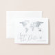 Silver World Map Folded Destination Save the Date Folienkarte