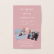 Eine echte Silber-Weltkarte auf der Vorderseite einer gefalteten Save the Date-Karte für eine Hochzeit im Ausland, Hochzeit in Urlaubsort oder Reise-Thema Empfang, mit 2 Fotos und Reisedetails und Website innen auf einem gedämpften staubigen Rose rosa bearbeitbaren Farbhintergrund.
