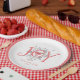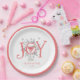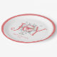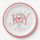 Whimsical einzigartige illustrierte JOY Typografie Neujahr Party Papier Teller mit Ferien Cocktail und Kiefernbäume. Freuen Sie sich auf einen fröhlichen Urlaubssaal. Toast zu einem glücklichen 2023. Machen Sie diesen Urlaub zu GÜNSTIGEN!