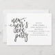 Diese schlichte Silvesterfeier-Einladung enthält die Worte "Neujahrs-Party" in einem modernen Holzkohleskript auf weißem Hintergrund. Ihre Party-Details sitzen rechts in der gleichen Holzkohle-Farbe. Der Hintergrund ist ein silberfarbenes und dunkelgraues Muster. Behalt den Hintergrund, wie er ist oder mit der Option Anpassen, können Sie ihn löschen und wählen Sie eine Farbe aus der Palette oder verwenden Sie Ihre eigene Hex-Nummer.