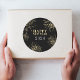 Dieser fröhliche Silvesteraufkleber in Schwarz und Gold bietet eine moderne, elegante und klassische Illustration mit prominenten Feuerwerken.