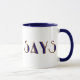 " Simon sagt" in der Blau- und Goldbeschriftung in einem Dreißigerjahre Modernist-Schriftart