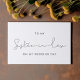 Une carte cadeau simple et minimaliste pour écrire un message personnel et sincère pour votre belle-soeur le jour de votre mariage. Entièrement personnalisable avec vos couleurs préférées (texte et arrière - plan). Vous pouvez ajouter un message à l'arrière, ou le supprimer et le laisser vide si vous préférez écrire votre message à la main plus tard.