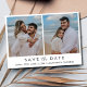 Zwei Fotos Hochzeit speichern das Datum, perfekt für Ihre kalifornische Hochzeit (oder andere Küstenstreifen). Passen Sie mit zwei Ihrer Lieblings-Verlobung-Fotos und Ihren Hochzeitsdetails an.