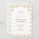 Simple invitation en vichy baby shower beige pour un événement neutre pour les femmes.