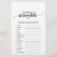 Dieses schlichte schwarze Kalligrafie-Spiel "Mama oder Papa" ist perfekt für eine rustikale oder moderne Babydusche. Auf der Vorderseite der Spielkarte steht "Mama oder Papa?", auf der Rückseite der Karte steht "Baby word cramble". Das minimalistische Design besticht durch eine elegante Typografie und ein reizendes Herz. Personalisieren Sie die Vorderseite der Karte mit dem Namen des Mama-to-be- und Baby-Duschdatums. Sie können die Fragen des Spiels personalisieren, indem Sie auf den Button "Anpassen" klicken. BABY SCRAMBLE ANTWORT KEY: 1.Windeln 2.Bassinet 3.Flasche 4.Crib 5.Schnuller 6.Änderung Tabelle 7.Gestütetes Tier 8.Stroller 9.Gummiherde 10.Blanket 11.Teether 12.Formel 13.Hochstuhl 14.Mobile 15.Thermometer