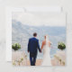 An elegant wedding invitation showcasing flowing script calligraphy paired with refined serif and modern sans fonts in classic black. The front features a photo overlay, while the back highlights a second photo with a customizable monogram. Coordinating pieces are available.