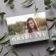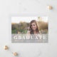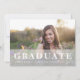 Le faire-part de photo moderne de graduation présente votre photo à fond de fond orienté paysage sur le devant, avec un revêtement blanc pur portant "Graduate" en caractères blancs gras, ainsi que votre nom, l'école et l'année de graduation. Les cartes s'inversent vers un subtil motif ikat en gris et blanc de colombe. Un choix élégant et moderne pour les diplômés 2023.