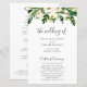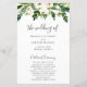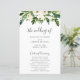 Programme de mariage floral avec aquarelle peinte à la main roses blanches et verdure avec "le mariage de" dans un élégant script manuscrit. Le côté avant a votre ordre de cérémonie et le dos a votre fête de mariage et message de remerciement. Ces programmes de mariage bon marché sont imprimés sur des feuilles de papier pour une option économique.