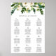 Élégant tableau de sièges à mariage floral avec des roses blanches peintes à la main et de la verdure, ainsi que les numéros de table dans un joli script manuscrit. Ce tableau de places mariage est parfait pour un mariage dans le jardin en été.