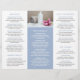Brochure triplée élégante avec un design simple et moderne dans une couleur bleu clair / bleu poussiéreux / bleu poudre. L'intérieur comprend votre liste de prix / menu service. Ce design est parfait pour un spa de jour mais peut être modifié pour n'importe quel type d'entreprise.