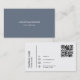 Simple entreprise noir QR Code carte de visite dans un style minimaliste moderne. Le modèle peut être facilement mis à jour avec votre code QR et vos coordonnées. Le côté avant est bleu-gris, le côté arrière blanc