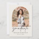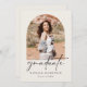 Eine elegante minimalistische High School Abschluss Ankündigung für 2024. Dieses schlichte Design hat einen cremefarbenen Hintergrund mit Boho-Arches auf der Vorderseite und zurück, um Fotos des Absolventen mit Familie und Freunden zu teilen. Eine großartige Möglichkeit, die Leistung Ihres Absolventen in Stil verkünden und mit der personalisierten Botschaft auf der Rückseite anpassen.