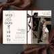 This elegant and unique mocha brown and ivory bow modern typography wedding save the date, features a full bleed photo with bride & groom names behind a beautiful watercolor striped ribbon and black coquette bow on the front, with save the date details and wedding website in a chic modern design on the back in brown over a clean creamy ivory background. Personalize the wording for your big day and easily upload your photo! You may even edit / adjust placement of design components or change colors further, by clicking the blue "Edit using design tool" button at the bottom of the "Personalize this template" window, then navigate to the "layers" tab in the left hand column of the edit screen, select the front or back side layer, then click on the element you would like to change and make it your own ♥ Find more similar design & color options (ie: 3 photo design, or black and ivory / black and white colors) in the full collection above! Words: "and", "the", and "formal invitation to follow" are graphic elements and cannot be edited. Custom design requests, specific wedding color requests, and questions are always welcome - click the "message" button or email: figandlilyco@gmail.com. Design is lovingly created by Fig and Lily Studios, sending blessings and thanks for being here with us! Photo credit of our beautiful daughter's engagement/wedding: @laurenmargaretphotography