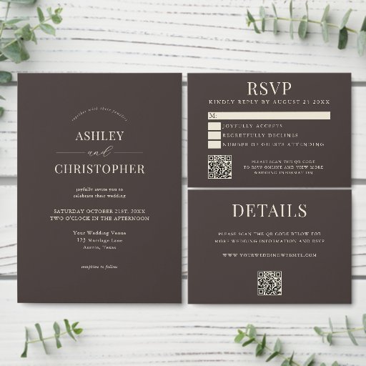 Simple Brown Modern QR Code Wedding RSVP Karte