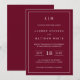 Einfache Hochzeitseinladung mit modernem und elegantem Design mit zwei Buchstaben Monogramm oben, einem kühnen Datumslayout und Ihren Details, umgeben von einer dünnen Grenze. Der gesamte Text ist weiß über einem bordeauxfarbenen Hintergrund. Die Schriftart und Hintergrundfarben können beliebig verändert werden. Ein elegantes und stilvolles Design, das sich ideal für ein minimalistisches Paar eignet.