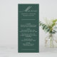 Custom wedding menu card. Simple classic and elegant design emerald green to coordinate with your wedding colors (please browse my store for alternative colors or click "customize further" and change the background color to suit). The template is ready for you to add the bride and groom names, wedding date and your menu.