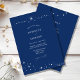 Invite your guests to a night of romance and starlight with this Simple Celestial Elegant Blue Wedding Details and Invitation from the Celestial Elegant Wedding Collection. Featuring a deep navy blue background adorned with twinkling stars and refined typography, this modern celestial design is perfect for couples who love a minimalist yet luxurious aesthetic. Easily personalize with your names, wedding date, and venue details for a fully customized touch. Ideal for celestial weddings, winter celebrations, or elegant evening receptions. Pair it with matching RSVP cards, programs, menus, and signage for a cohesive wedding suite.