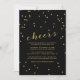 Cette invitation de fête de vacances moderne par The Spotted Olive™ présente un arrière - plan noir avec des points de confettis en or audacieux et le mot "cheers" dans un style élégant. Copyright ©2014 The Spotted Olive. Tous droits réservés.