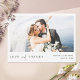 Ce modèle photo mariage simple et chic présente un design élégant, minimaliste et moderne. L'avant présente vos prénoms et votre date sous votre photo préférée et un message 'LOVE and THANKS' en noir véhiculé par un mélange frappant de deux polices distinctes, avec 'and' dans un script léger et fluide entre les deux autres mots, qui sont en coque supérieur avec un aspect formel audacieux et croustillant. La partie "LOVE and THANKS" du design est en noir et ne peut pas être modifiée. Lorsque vous modifiez le recto pour afficher vos propres noms et date, vous pouvez changer la couleur de ce texte en une certaine couleur ou quelque chose d'autre au lieu du noir légèrement adouci par défaut, selon votre goût. Sur le dos, nous avons choisi une teinte arrière - plan qui n'est pas très blanche, c'est un gris très clair qui s'appelle en grande partie blanc White Smoke. Vous pouvez modifier cela en sélectionnant une autre couleur dans les outils d'édition si vous le souhaitez. Ou vous pouvez choisir de rendre l'arrière - plan sur le dos transparent pour laisser la couleur du papier simplement servir de tonalité de base. La couleur de texte par défaut sur le dos est le même noir légèrement adouci que nous avons utilisé pour les noms et le texte de date sur le devant, mais vous pouvez changer cela si vous préférez une autre couleur. Nous avons mis un exemple de texte au dos pour que vous le remplaciez par votre propre message comme vous le jugez bon, mais s'il vous plaît ne vous sentez pas restreint par cela. Si vous préférez supprimer entièrement notre exemple de texte et garder le dos complètement vide afin que vous puissiez écrire une note manuscrite sur chaque carte à la place, vous pouvez le faire. Ou vous pourriez vouloir remplacer notre texte par votre propre message de gratitude et votre propre clôture, puis signer vos noms à la main lorsque vous recevez les cartes. Dans n'importe quel coque, n'oubliez pas de retirer tout l'échantillon/espace réservé de texte des deux côtés ainsi que notre photo échantillon ! Nous avons choisi mat plutôt que semi-brillant comme choix de papier par défaut, car il est bien adapté pour écrire votre propre message sur et ne sera pas suffisant. Vous pouvez bien sûr changer cela en semi-brillant, ou vous pouvez envisager de passer à quelque chose avec une texture comme "Laid" ou "Felt White" de zazzle, qui peut ajouter une sensation de chaleur et de profondeur. Nous espérons que vous aimerez expérimenter avec différents aspects de l'apparence de ce carte de remerciements mariage photo moderne et élégant et le rendre unique à vous avec les outils de design intuitif, votre photo et votre inspiration!
